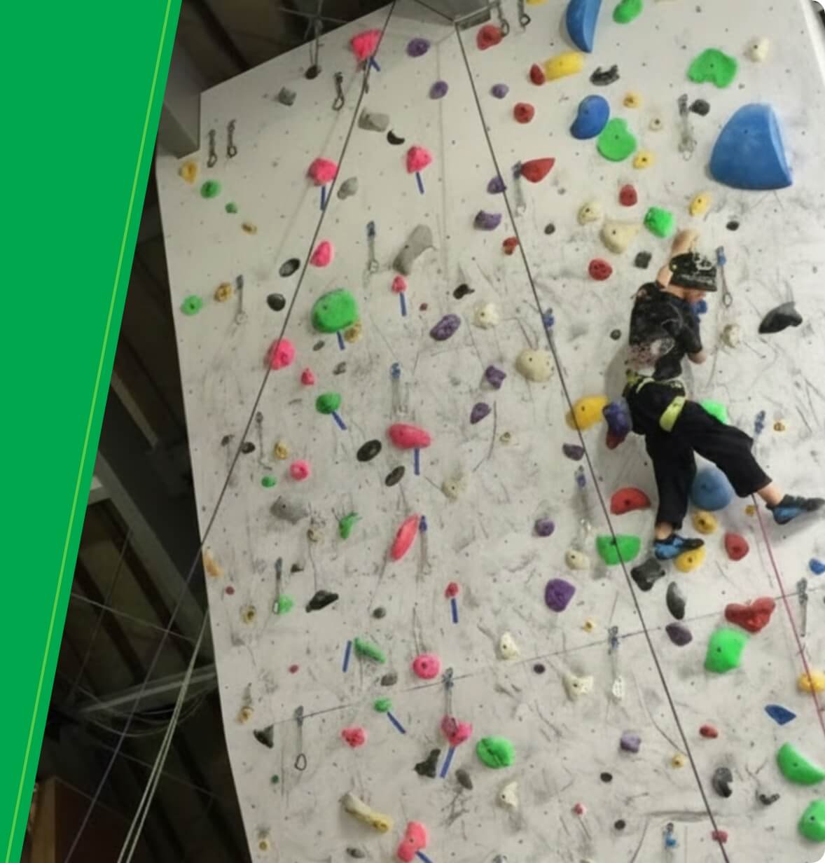 多彩な傾斜の壁で、初心者から上級者まで幅広く楽しめます。