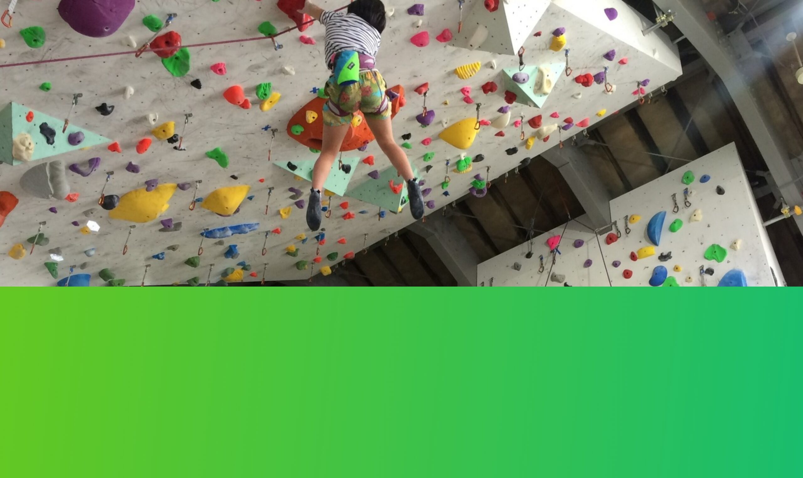 クライミングジム コーティでは、高さ10mのルート壁や強傾斜壁、緩やかな傾斜の壁まで完備。