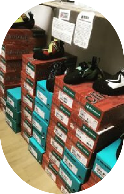 クライミングシューズやギヤなど、有名ブランドを取り揃えて
