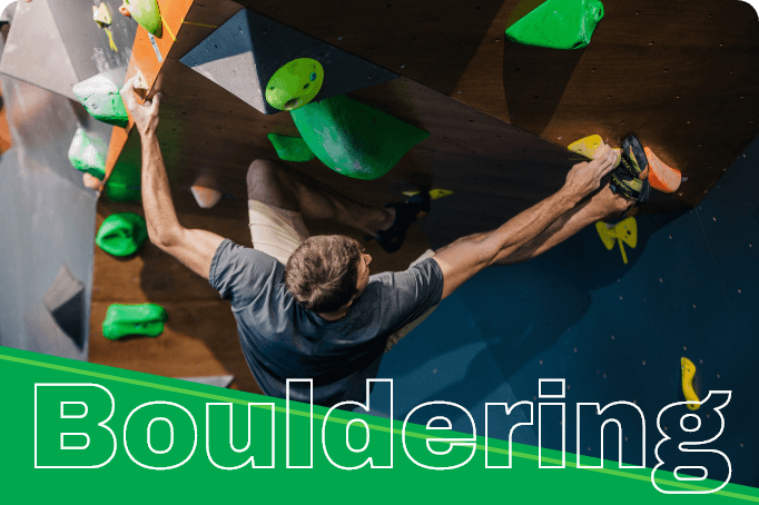 ロープを使わず低い壁を登るクライミングです。